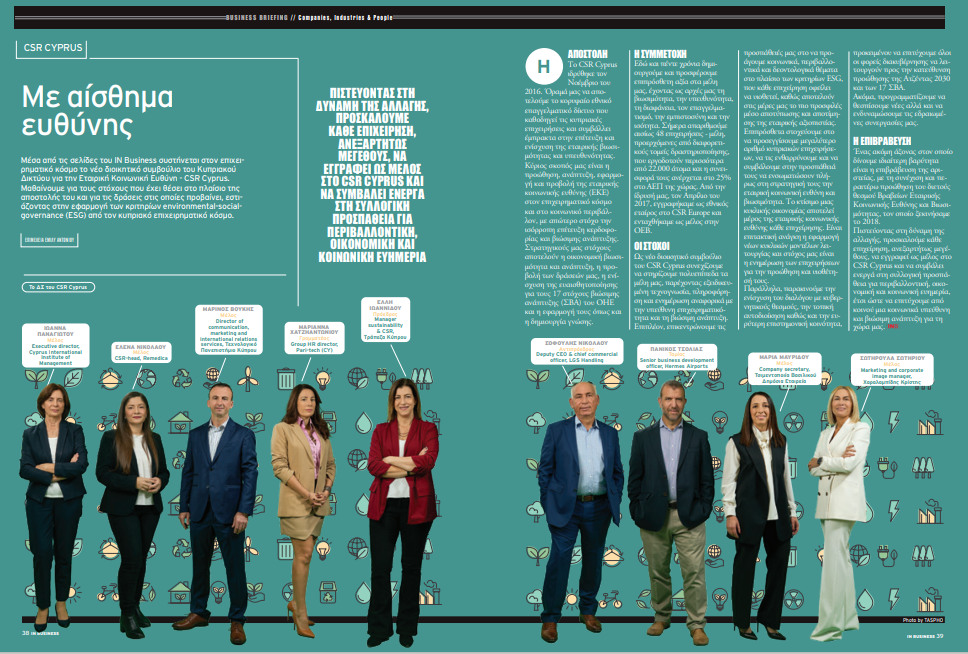 Στις σελίδες του InBusiness Δεκεμβρίου 2021 φιλοξενείται παρουσίαση του Διοικητικού Συμβουλίου του CSR Cyprus και παρουσιάζονται οι στόχοι και οι δράσεις που δρομολογεί για την προσεχή διετία.
