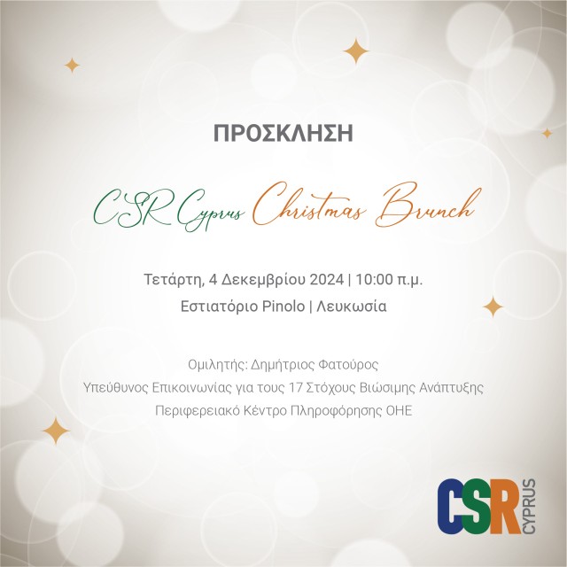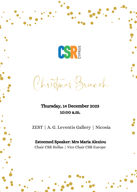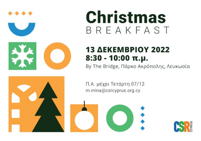 Το CSR Cyprus προσκαλεί τα Μέλη του σε χριστουγεννιάτικο πρωινό γεύμα την Τρίτη, 13 Δεκεμβρίου 2022 και ώρα 08:30 π.μ. στο εστιατόριο By the Bridge εντός του πάρκου Ακρόπολης, στη Λευκωσία.