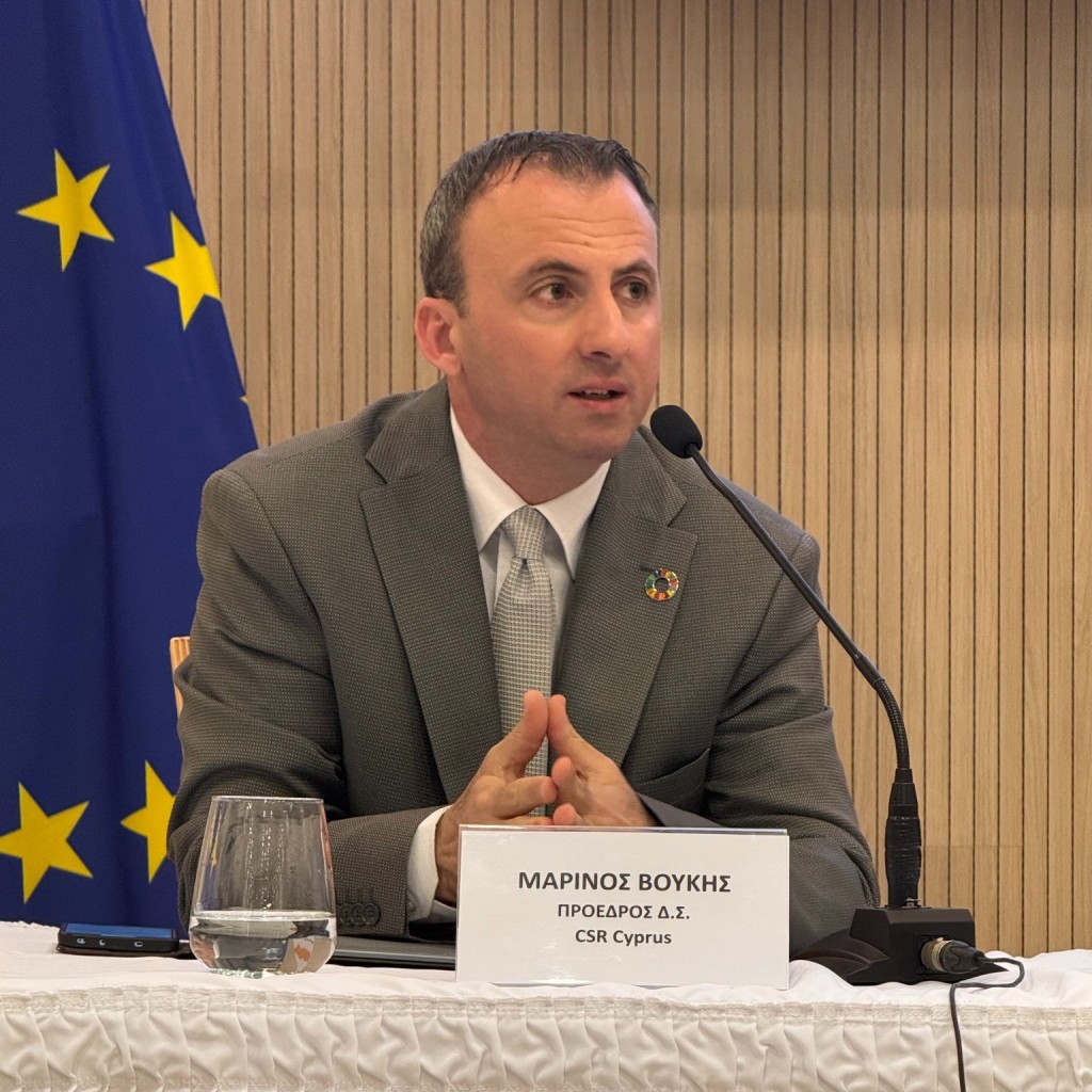 Στον χαιρετισμό του ο Πρόεδρος του Δ.Σ. του CSR Cyprus Δρ Μαρίνος Βουκής τόνισε τη χαρά του Δικτύου για τη συμμετοχή του σε αυτό τον πρωτοπόρο θεσμό, που θα τιμήσει πρωτοβουλίες μη κυβερνητικών οργανισμών, που δημιουργούν συνθήκες για ένα καλύτερο αύριο στην κοινωνία και το περιβάλλον της Κύπρου. Όπως σημείωσε, το CSR Cyprus κάνει πράξη τον 17ο Στόχο της Συνεργασίας, κτίζοντας γερές συμπράξεις με φορείς του δημοσίου και της κοινωνίας των πολιτών.