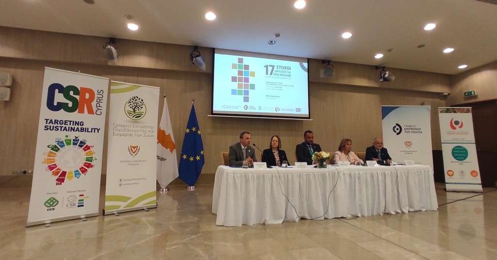 Πραγματοποιήθηκε σήμερα Παρασκευή, 28.03.2025, δημοσιογραφική διάσκεψη στο Προεδρικό Μέγαρο για την προκήρυξη των πρώτων βραβείων Βιώσιμης Ανάπτυξης για ΜΚΟ «17 Στόχοι, Δράσεις για Ένα Μέλλον», που συνδιοργανώνονται από τη Γενική Διεύθυνση Ανάπτυξης – Υπουργείο Οικονομικών, το Γραφείο Επιτρόπου του Πολίτη, το Γραφείο της Επιτρόπου Περιβάλλοντος και Ευημερίας των Ζώων, το Παγκύπριο Συντονιστικό Συμβούλιο Εθελοντισμού και το Κυπριακό Δίκτυο για την Εταιρική Βιωσιμότητα και Υπευθυνότητα (CSR Cyprus).