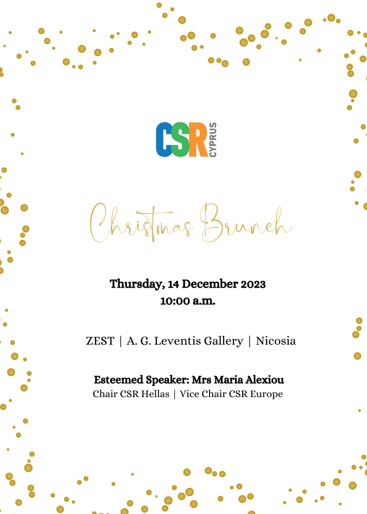 Το CSR Cyprus προσκαλεί τα Μέλη του σε χριστουγεννιάτικο πρωινό γεύμα την Πέμπτη, 14 Δεκεμβρίου 2023 και ώρα 10:00 π.μ. στο ZEST της Λεβεντείου Πινακοθήκης, στη Λευκωσία.
